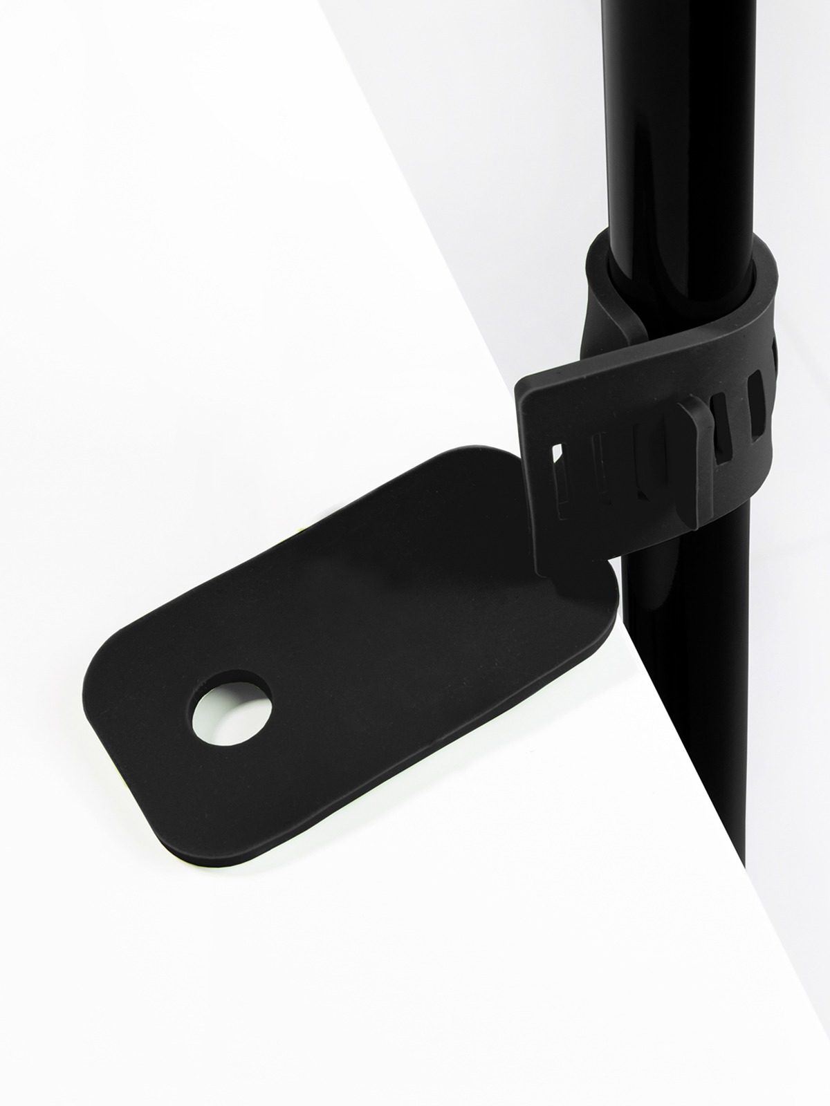• Lasche um das Rohr wickeln und den Halter durch einen der Schlitze befestigen, so dass er einen festen Halt hat