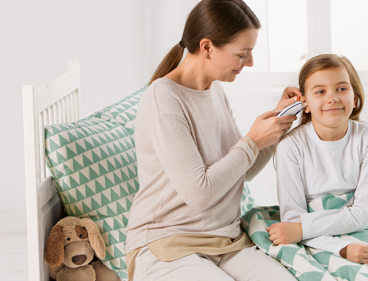 Das digitale Infrarot-Fieberthermometer mit zwei Messmethoden für Ohr- und Stirnmessung.